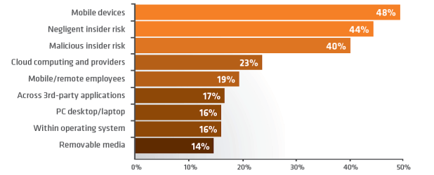 US organizations are far more concerned about the human factor risk to their IT infrastructure today and in the immediate future. Specifically, 71% of respondents from US organizations say they are concerned about malicious insiders. In the UK that number drops to 49%.