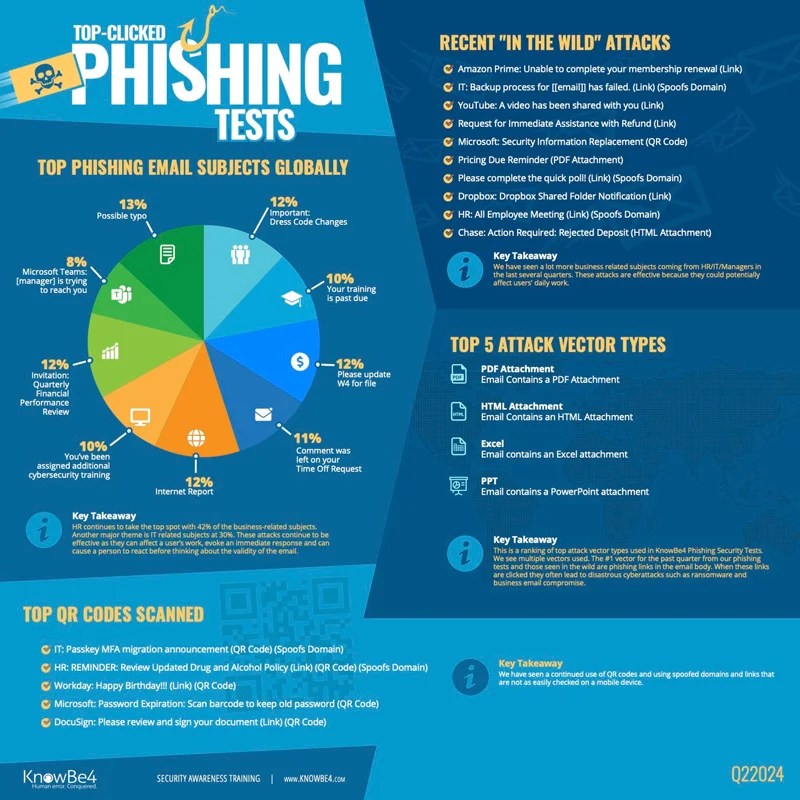 A picture paints a thousand words and this useful image from KnowBe4 quickly and simply summarises the current Phishing activities.